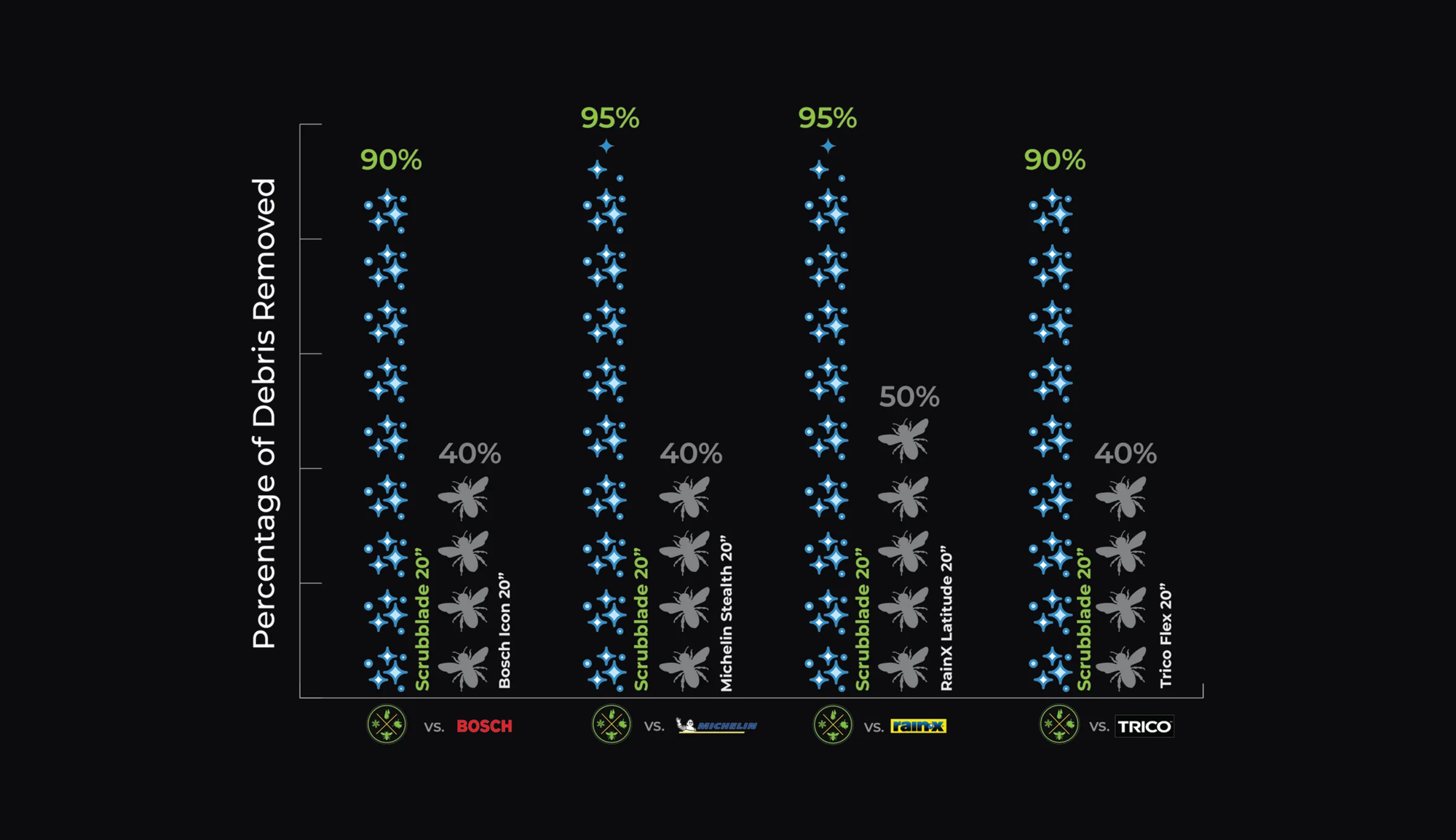 Scrubblade delivers exceptional performance no matter the conditions. Whether you're facing heavy rain, snow and ice, or dirt-filled roads, Scrubbalde Black Edition offers a superior cleaning experience, ensuring a clear windshield and a safer drive.
