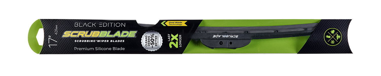 Elevate your driving experience with Scrubblade Black Edition wiper blades – where style meets substance. Featuring advanced silicone technology, these wipers ensure optimal contact without leaving a water repellent treatment. Whether in torrential rain, sleet, or snow, the Black Edition wipers provide unmatched clarity and safety.